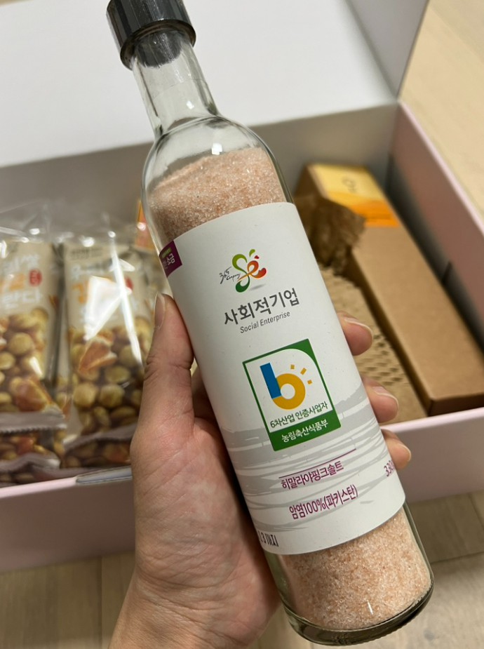 파키스탄의 100% 암염 히말라야 핑크솔트입니다. 농림축산식품부로부터 인증까지 받았으니 믿을만하다는 생각이 듭니다. 330g으로 용량도 꽤 큰 편입니다. 저는 소고기를 구워먹으면서 같이 찍어먹어 봤습니다. 색도 분홍색으로 곱지만 맛도 곱고 맛이 있었습니다. 이름 그대로 행복한 소금이었습니다. 히말라야 핑크솔트 중에는 믿을 수 없는 곳도 조금 있는 듯 한데요, 이왕이면 정부로부터 인증을 받은 곳을 이용해 보시는 것은 어떨지 생각이 듭니다.