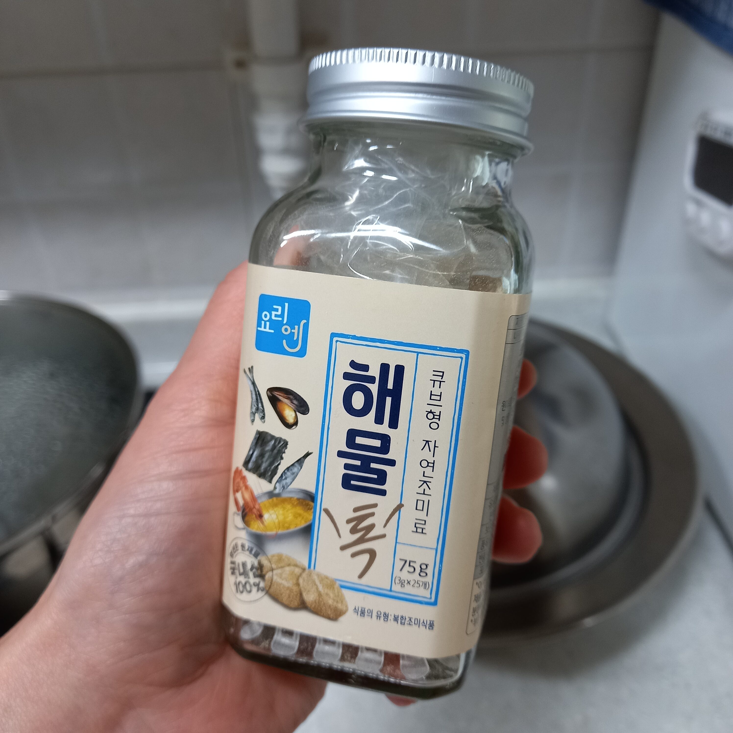 해물육수라 비리지 않을까했는데 그런 걱정 전혀 하지 않아도 될정도로 냄새 없구요, 끓는 물에 넣는 즉시 녹아버려 성격 급한 저한테 딱이더라구요.ㅎㅎ